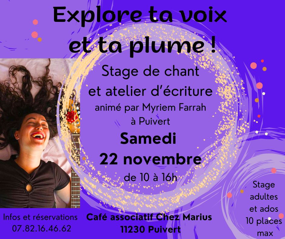 Rejoignez-moi pour explorer votre potentiel vocal en cours particuliers ou en stages collectifs. Suivez la programmation et venez assister à des concerts inspirants !